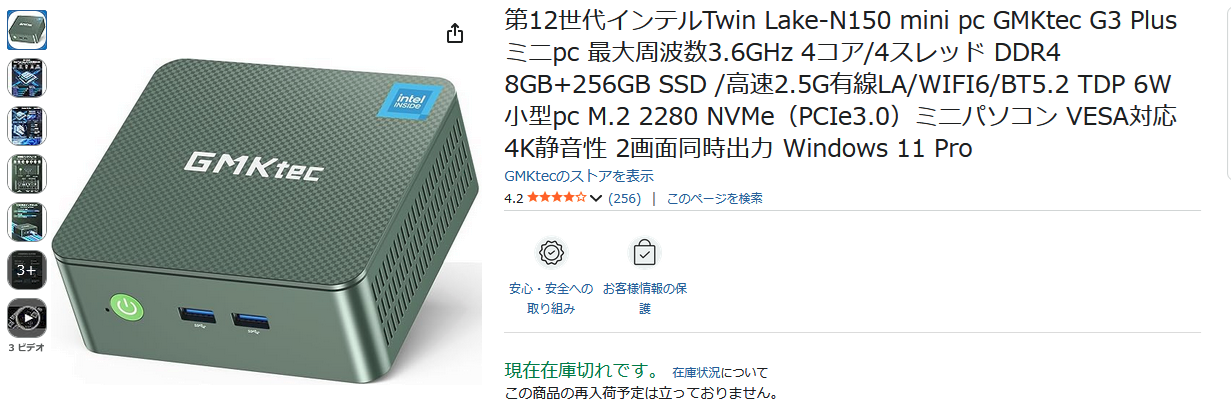 その為購入したのがこちら。購入当時は2万円いかない価格でした。ゲームや重い処理をやる訳でもないのでスペック的にこのくらいで良かったわけです。 このMiniPCにUSBハブ経由でストレージを接続してNASとして利用する事になります。内蔵SSDの容量が足りませんからね。