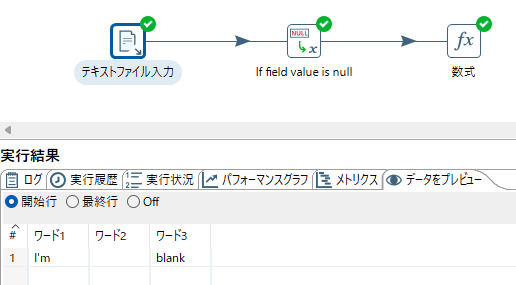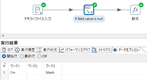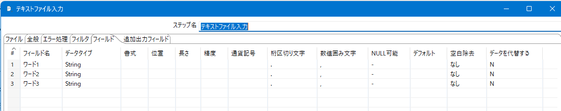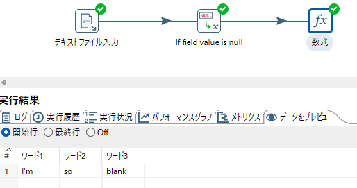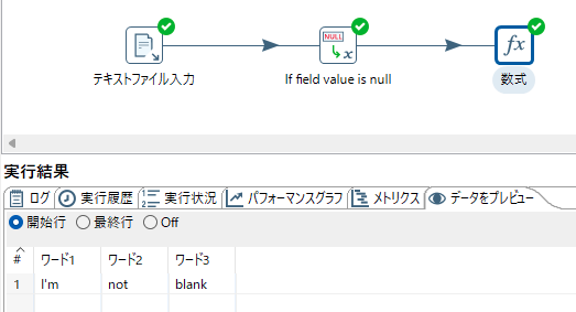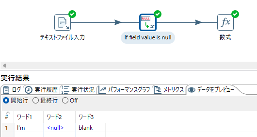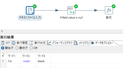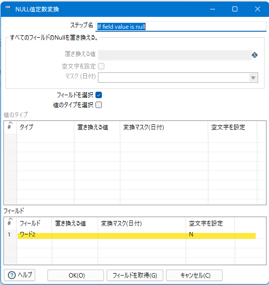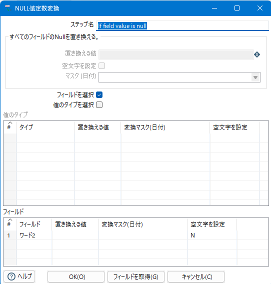 オプションがデフォルト状態でデータ変換定義を実行したところ、項目ワード2 が null の時 NULL値定数変換 を通すと長さゼロの文字列に無条件で変換される事象を経験した。