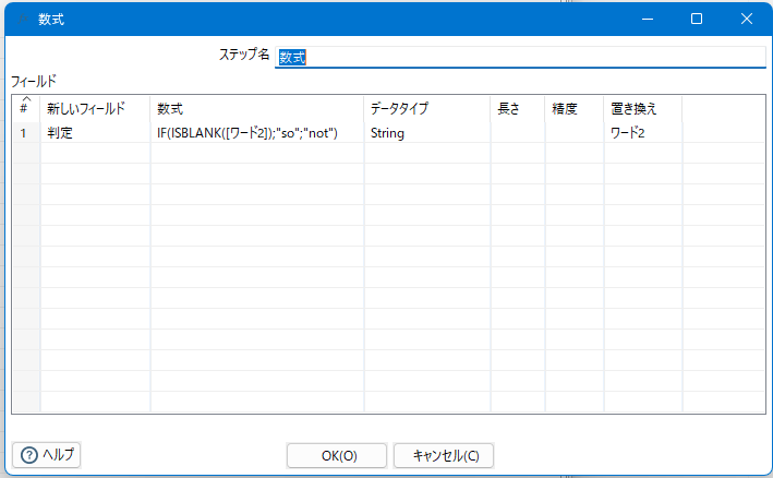 項目ワード2がブランク判定なら“so”、非ブランク判定なら“not”に置き換えする。