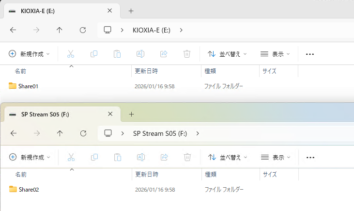 各ドライブに共有用フォルダを作成します。