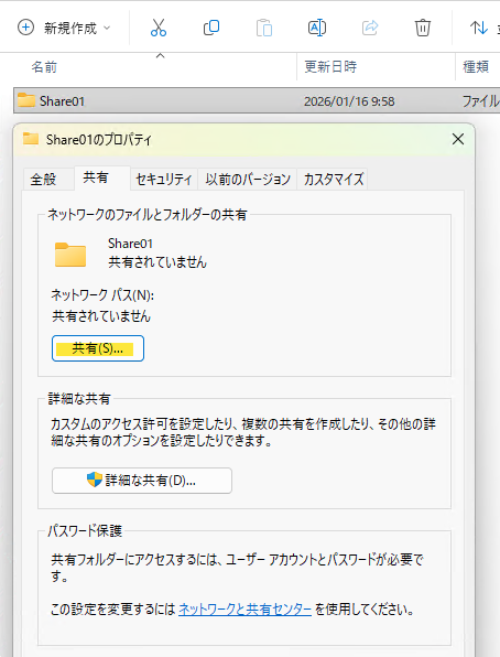 ※以下の例はShare01のもの。Share02も同様に設定する。