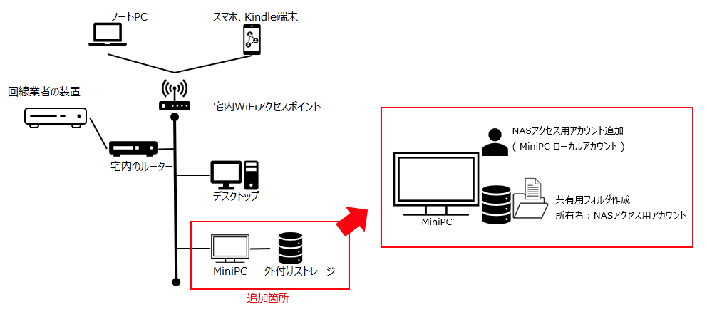 他の方はご自身の宅内ネットワークに赤線部分を追加する事になります。