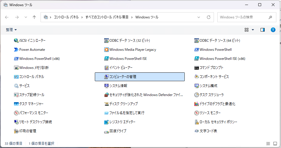 スタートメニューの「Windowsツール」からコントロールパネルを呼び出して「コンピュータの管理」を起動します。起動したら「ローカルユーザーとグループ」の「ユーザー」を選択します。