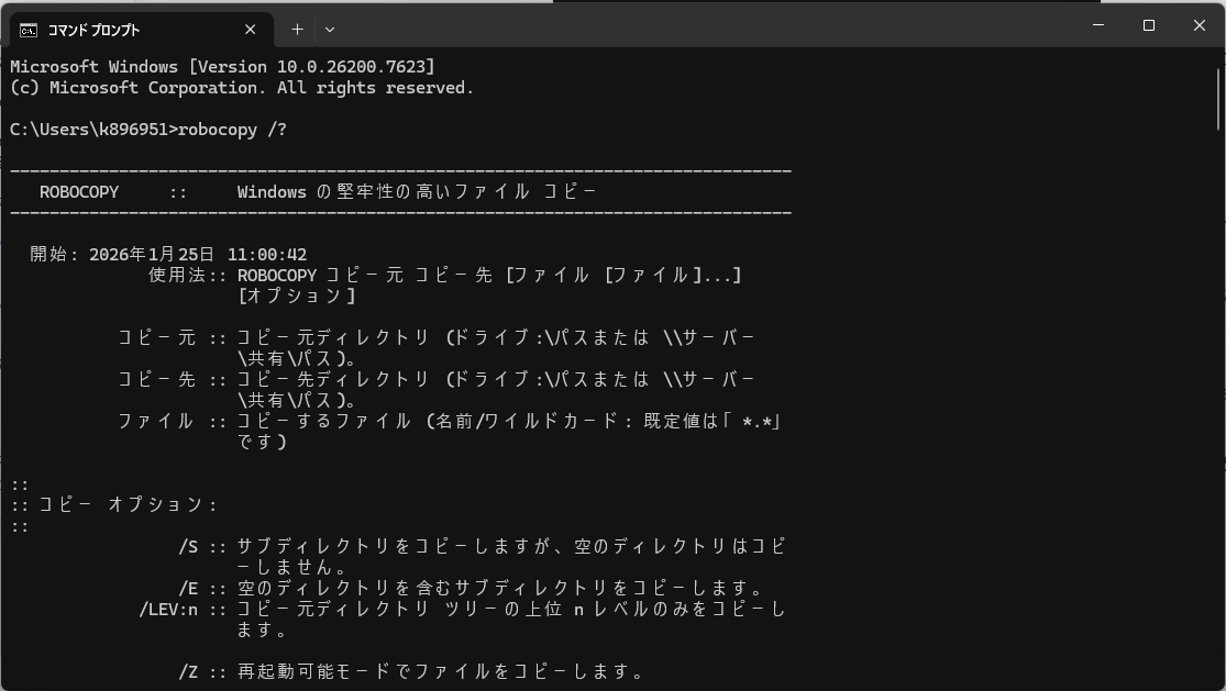 ROBOCOPYはWindows11の標準機能なのでダウンロードして云々はしなくて良いのでご安心ください。
