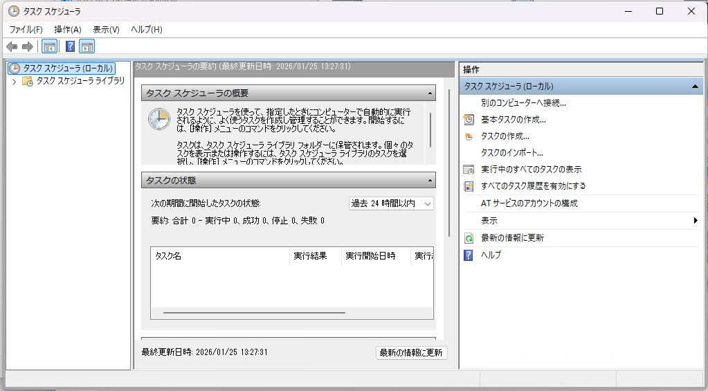 Windows11には標準機能で指定時刻に指定の処理を自動実行してくれる タスクスケジューラ があります。
