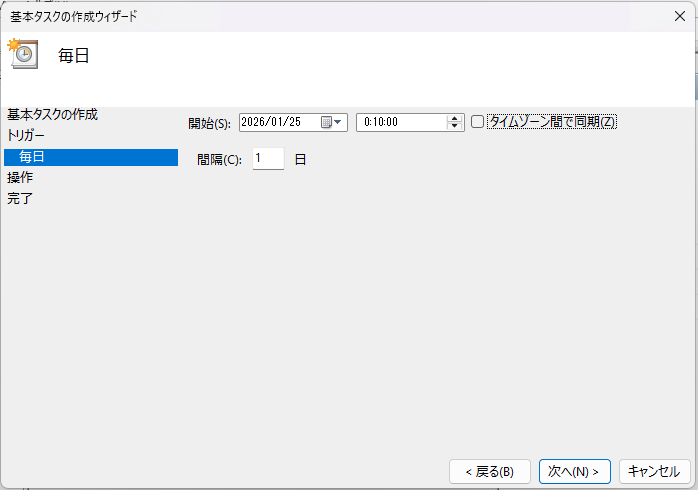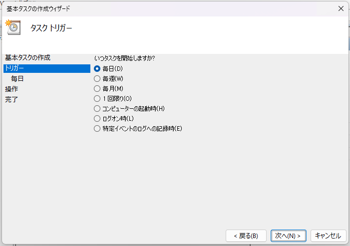 用意したPowerShellスクリプトを毎日指定の時刻にバックグラウンドで実行してもらうようにします。さすがに手動は面倒ですし…
