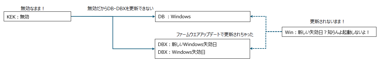 ※なお、KEKが無効でも、UEFIファームウェア更新等によりDBXだけが更新される可能性は残る。